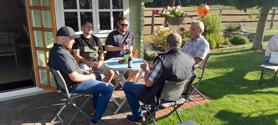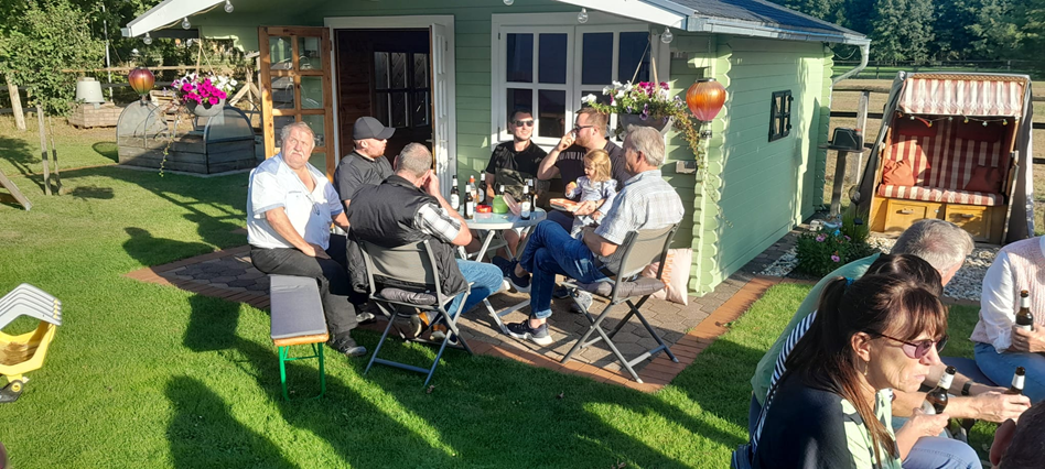 und natürlich auch bei Heinz und Irmgard, dass der Abschluss bei ihnen im Garten durchgeführt werden konnte.