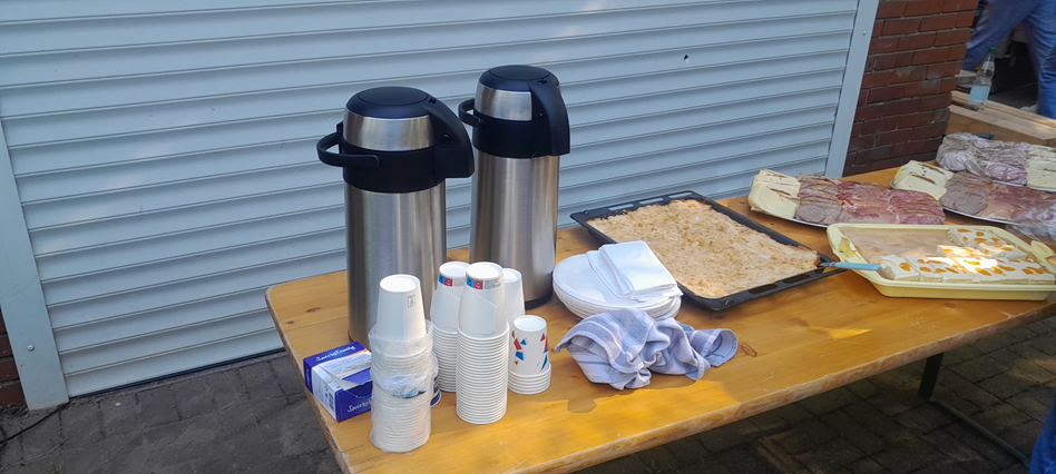 Hier hatte unser Kompanie-Festausschuss Kaffee, Kuchen, belegte Brote und kühle Getränke vorbereitet.