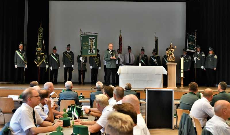 Nach dem Einzug der Fahnen- und Standartenabordnungen, eröffnete unser Präses Jörg Plümper die Versammlung mit einem Wortgottesdienst.