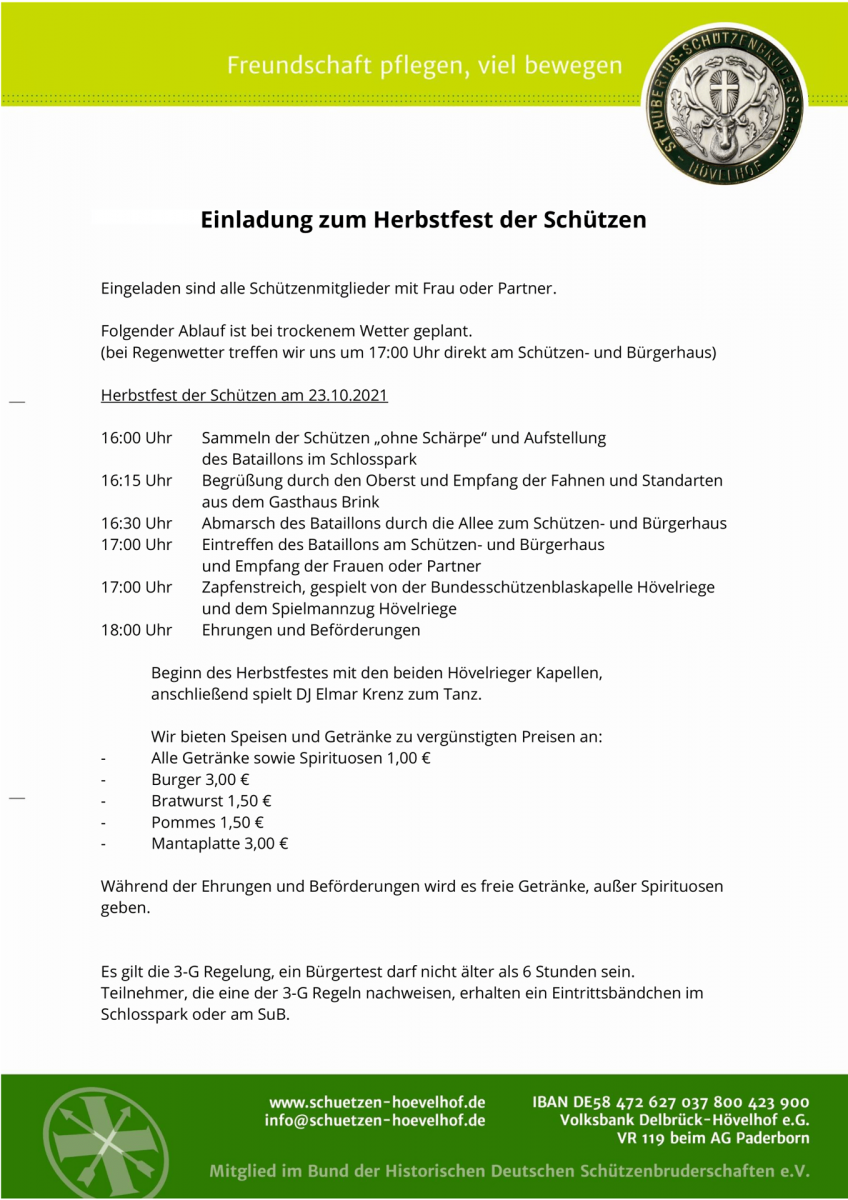 Herbstfest der Schützen am Samstag, 23.10.2021