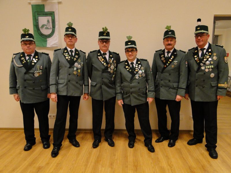 auf dem Bild v.l.: Ingo Henrichsmeier (Schießmeister), Jürgen Reddeker (Schriftführer), Rudi Rauen (stv. Kompaniechef), Ingo Spitzer (Kassierer), Bernhard Weber (Spieß), Johannes Michelis (Kompaniechef)