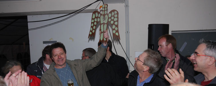 Selbst das nicht gerade ideale Wetter konnte die Schützen der Hövelrieger-Kompanie die Laune und Lust auf Ihr Maitreffen nicht nehmen. So trafen sich schon einige von Ihnen beim Kompanie Schriftführer um von dort aus mit musikalischer Begleitung des Tambour Corps Hövelriege zum eigentlichen Ort des Geschehens zu wandern. Ziel war der Hof von Rudi und Elisabeth Nordhoff der von der Mühlengruppe und den beiden Kohlrieger Gruppen hergerichtet wurde. Kompaniechef Manfred Bröckling begrüßte alle anwesenden Schützen aufs Herzlichste aber besonders begrüßte er unser Prinzenpaar Michael Nordhoff und Rosa Hoppe. Im Anschluss begann auch schon das Bierkönigschießen unter der fachkundigen Leitung von Schießmeister Matthias Zitzke. Unter den zahlreichen Schützen taten sich folgende hervor: Apfelprinz – Florian Zitzke; Zepterprinz – Burkhard Einecke; Kronprinz – Thorsten Zitzke und neuer amtierender Bierkönig ist Bernhard Fortmeier. Fazit des Maitreffen war: Auch bei schlechten Wetter können die Schützen der Hövelrieger Kompanie mit ihren Freunden kräftig Feiern!