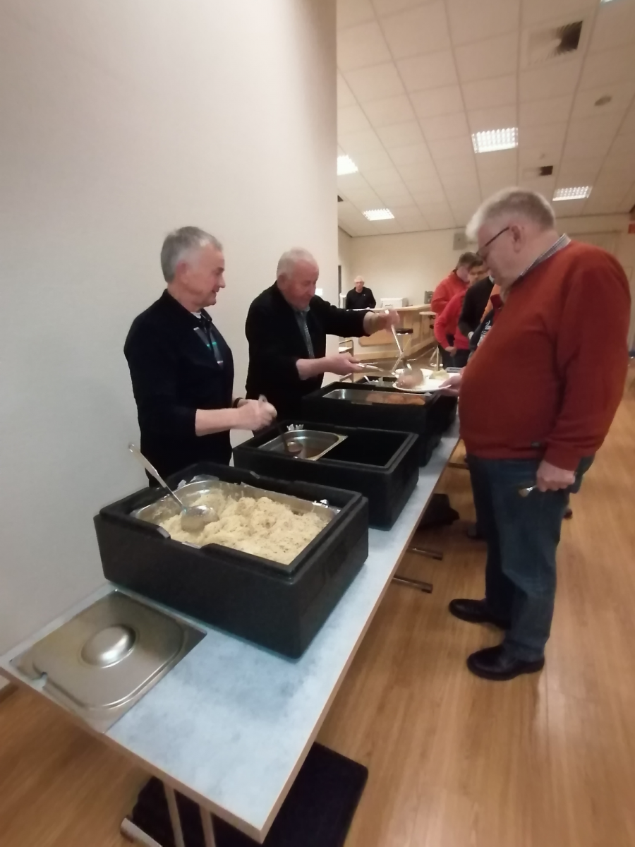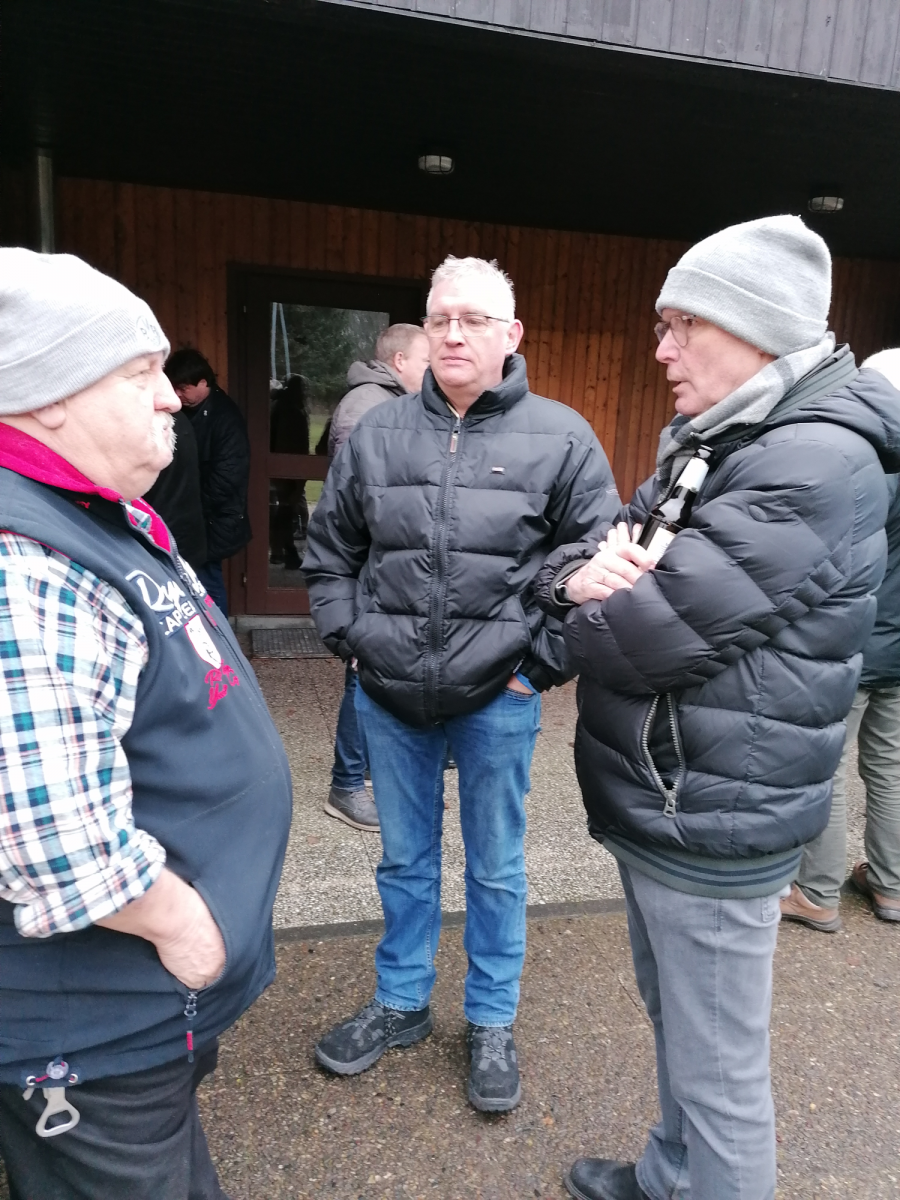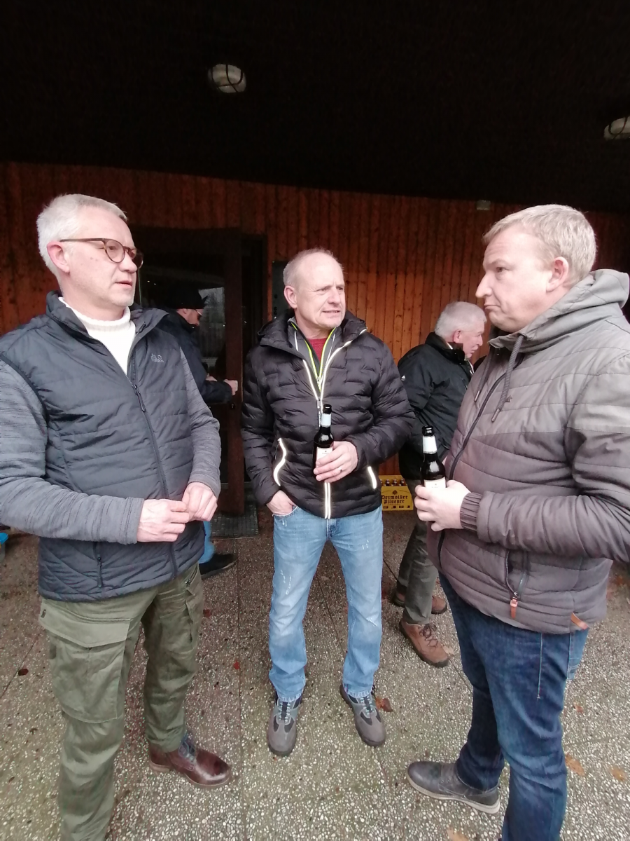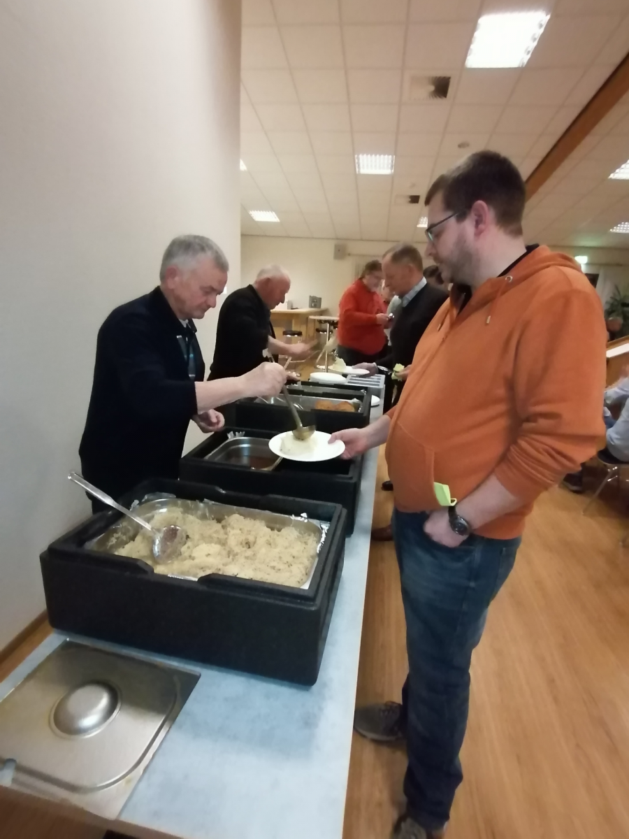 Nach dem Totengedenken und der Verabschiedung der Fahnen und Standarten war der offizielle Teil der Hubertusmesse beendet und es folgte der "gemütliche" Teil mit der Ausgabe der tradtionellen heißen Brühe sowie den kalten Getränken.