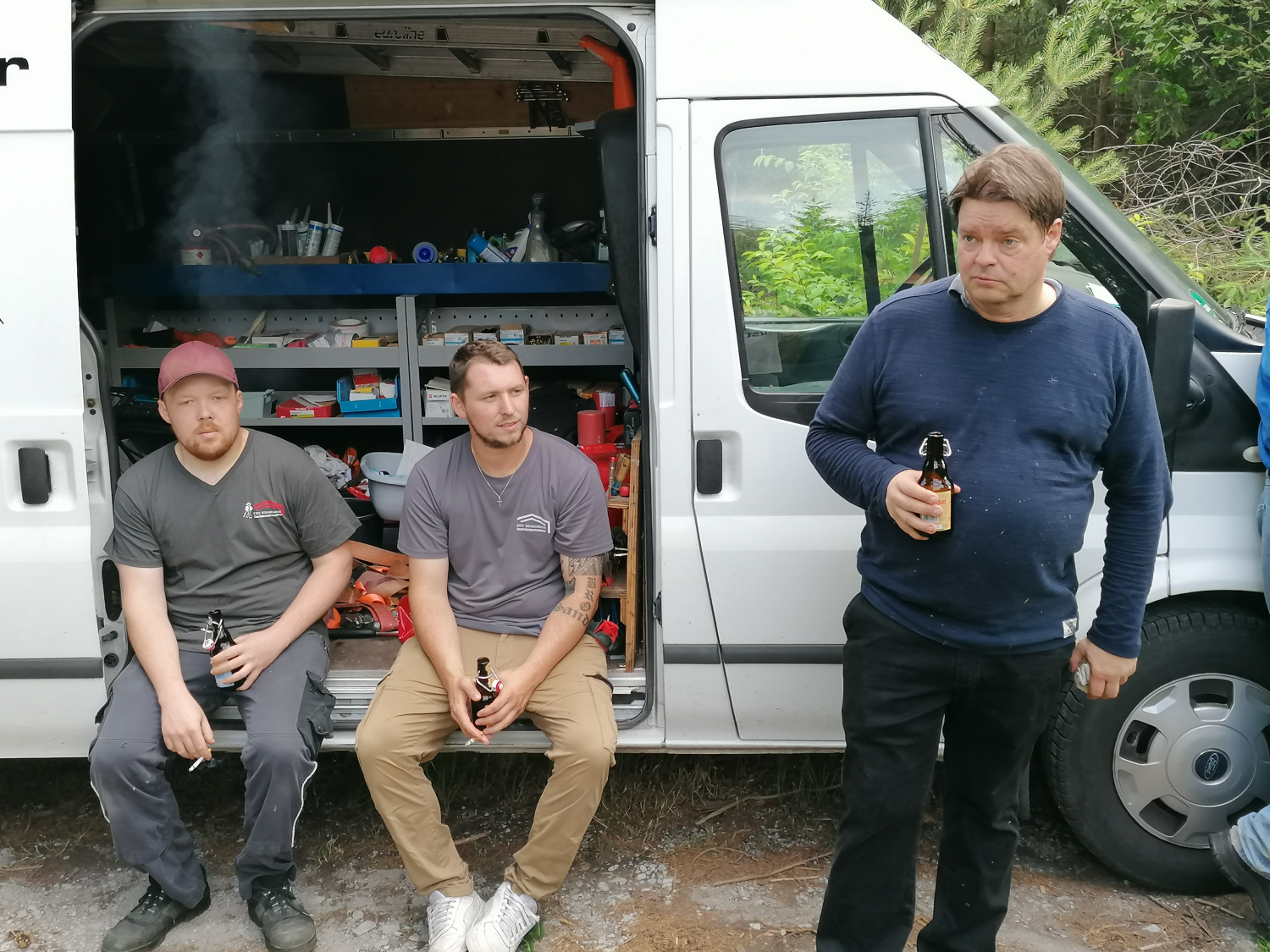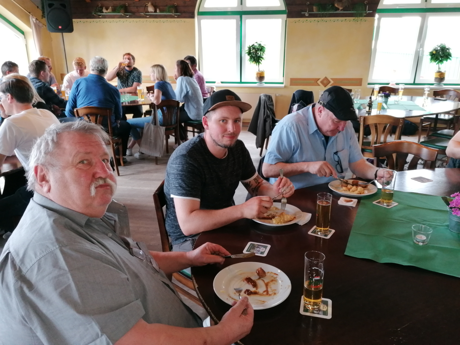 deftigen Mittagessen (Gegrilltes, Röstkartoffeln und Salat) sowie Kaltgetränken zu stärken.
