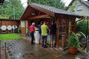 Daran anschließend ging es zurück Richtung Hövelhof. Ziel war der Garten unserer Kompaniemitglieder Markus, Stefan, Felix und Florian Nolte. Hier gesellten sich dann noch einige passive Teilnehmer hinzu, die die Radtour nicht mitfahren konnten.