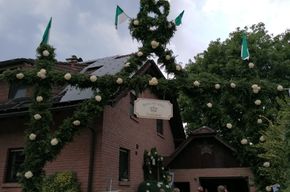 die Allee zur Pfarrkirche St. Johannes Nepomuk, welche schon im Vorfeld wieder einmal wunderschön von unseren