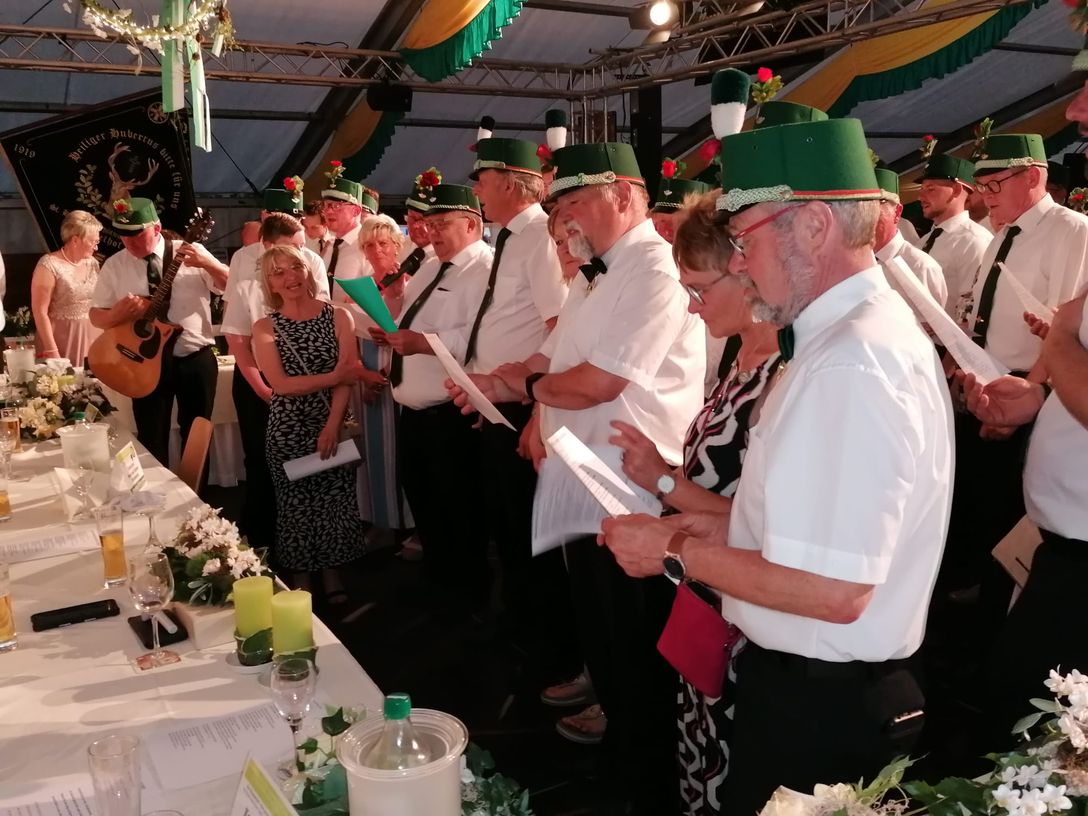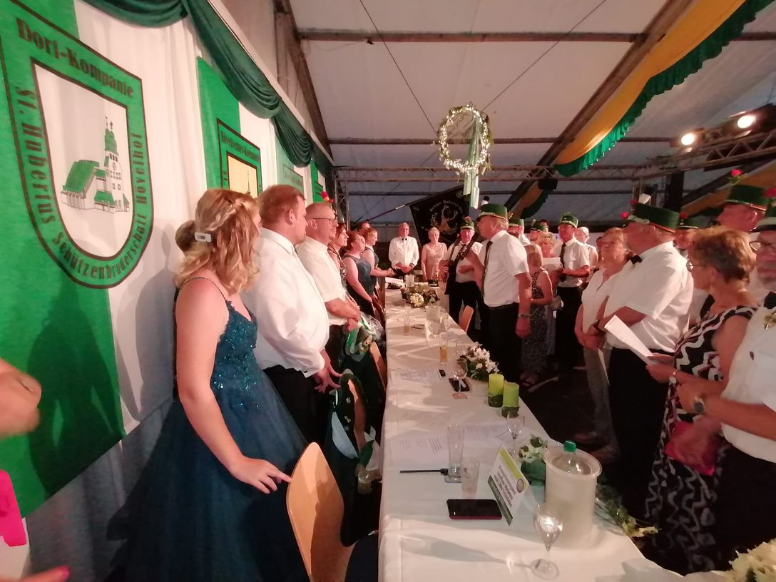 Um 22:00 Uhr ging es für uns Hövelsenner-Schützen noch einmal zum Aufmarsch auf den Thron, um gemeinsam mit dem Hofstaat ein Ständchen zu singen.